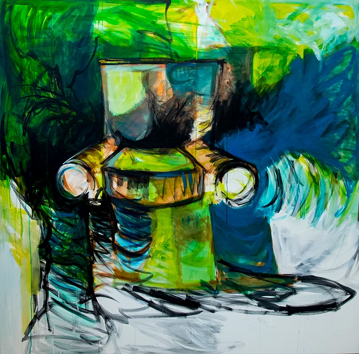 Words escape me when attempting to describe this body of work. My relationship with the work begins after the storm of creating the first strokes, is over. Then, I can exhale a little and work on all the other elements to finish the work.