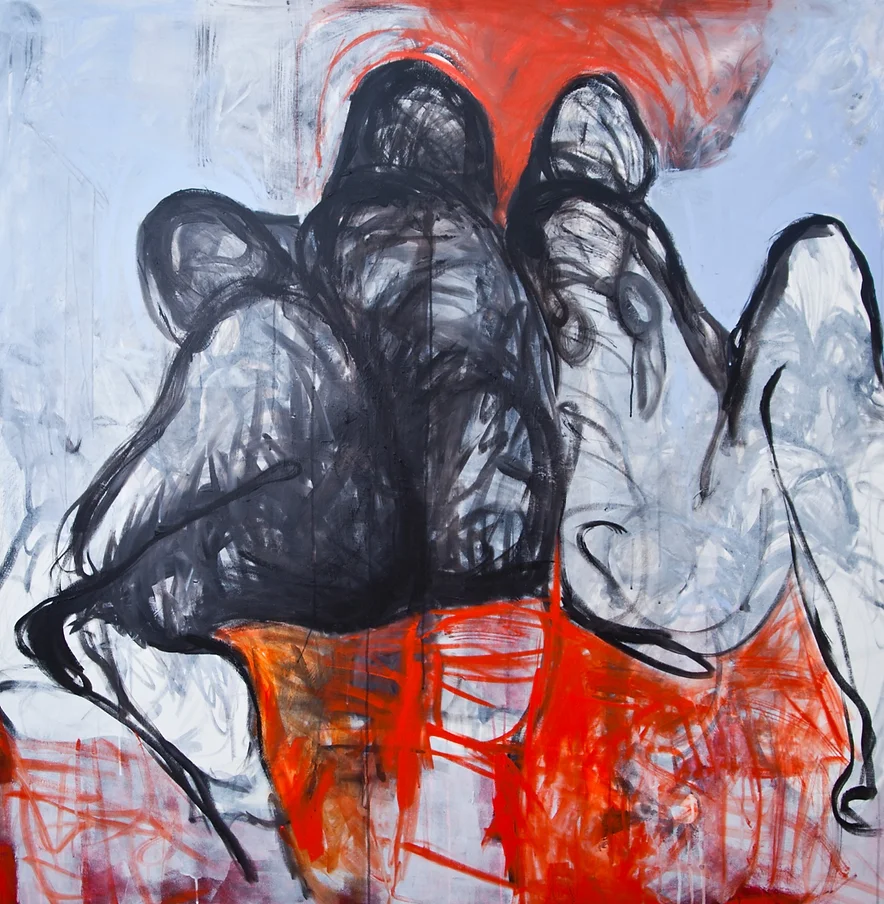 While painting I am in a turbulent state of tension, the making of art has never been a harmonious exercise for me. These images appear with the reoccurring chair that makes its way in joining the figures and creates a silent dialogue between them. Sometimes a chair, other times a sofa in parallel to the figures, it could be a symbol that speaks of emptiness, or a place waiting to be occupied.